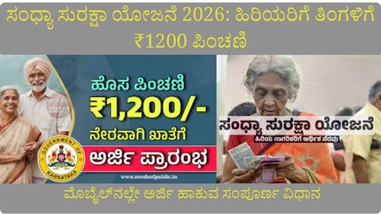 ಸಂಧ್ಯಾ ಸುರಕ್ಷಾ ಯೋಜನೆ 2026 ಮೂಲಕ ಕರ್ನಾಟಕದ ಹಿರಿಯ ನಾಗರಿಕರಿಗೆ ತಿಂಗಳಿಗೆ ₹1200 ಪಿಂಚಣಿ ಸಿಗಲಿದೆ. ಅರ್ಹತೆ, ದಾಖಲೆಗಳು, ಆನ್‌ಲೈನ್ ಅರ್ಜಿ ವಿಧಾನ ಮತ್ತು ಅರ್ಜಿ ಸ್ಥಿತಿ …